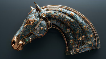 AI Generated. A blue rhino with a golden horn stands in front of a blue wall