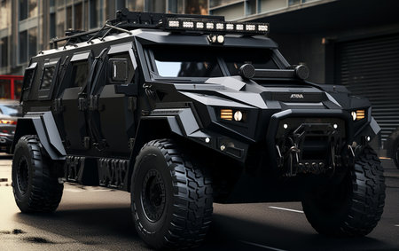 army armored vehicles of special forces, for interventions in the city and transportation of money, banner made with Generative AI
