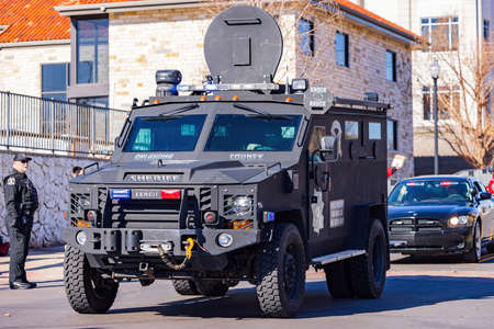 Oklahoma, JAN 17 2022 - Close up shot of the police vehicle in Martin Luther King Jr. Parade