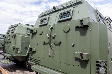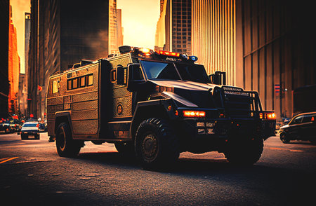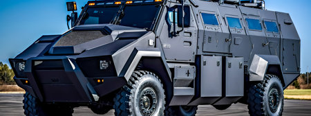 army armored vehicles of special forces, for interventions in the city and transportation of money, banner made with Generative AI