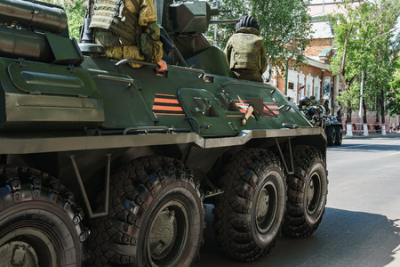 Column of technology, Rostov-on-Don, Russia, May 9, 2014. Return path after the parade.