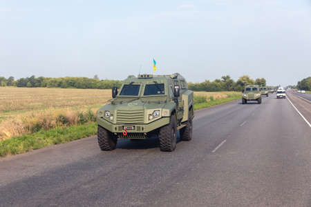 DONETSK Reg, UKRAINE - Aug. 11, 2022: A batch of 11 new Italian-made MLS SHIELD armored vehicles bought by the Poroshenko fund delivered to the Airborne Assault Forces of Ukraine