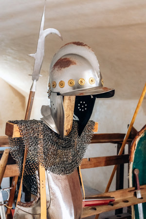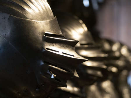 Close up of middle ages armor of the knight. Historic armoring used in combat battles.