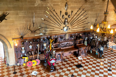 WARWICK, UK - JUNE 11, 2022: Interior of Warwick Castle - is a medieval castle built by William the Conqueror in 1068, UK