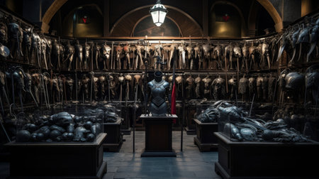 Armory in the Roman coliseum displaying a dazzling array of weapons and armor