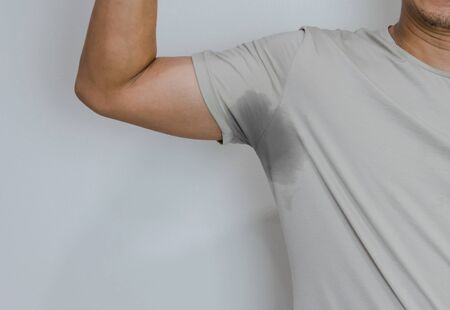 treatment of hyperhidrosis in a man with armpits. Sweat concept