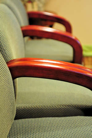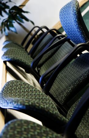 Side view of a row of office waiting room chairs
