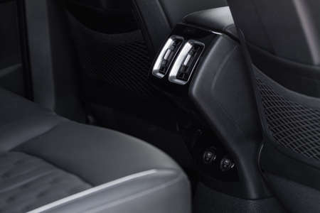 Close up view of interior of brand new modern luxury automobile.