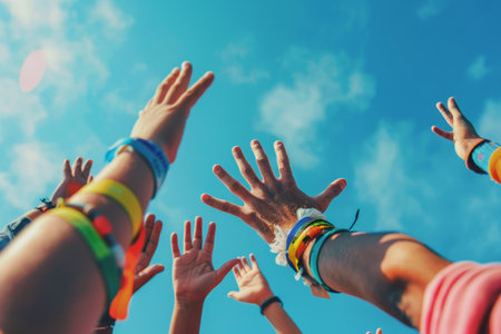 Raised Hands in Unity Symbol of Hope, Support, And Community Engagement in Vibrant Setting