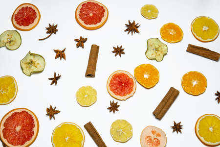 Christmas composition of dried fruits. Christmas, winter, new year concept. Flat lay.