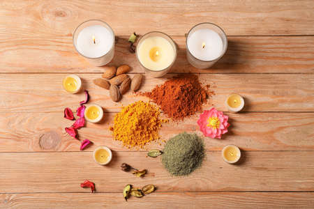 Modern flat lay style showcasing herbal medicine and cosmetic background