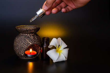 Hand feeding oil into aroma lamp for meditation and relaxation