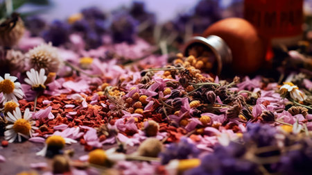 AI Generated. This herbal tea with dried flowers has a relaxing and aromatic effect