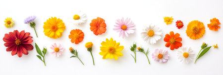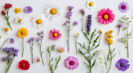 A vibrant array of colorful wildflowers arranged beautifully on a bright white surface for all to admire