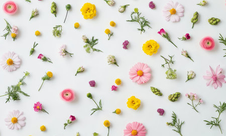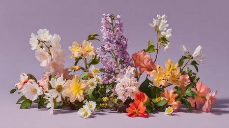 A stunning collection of fresh flowers arranged artfully against a soft background. This image captures the essence of nature's beauty and springtime joy.