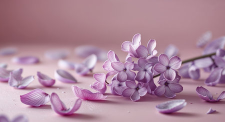 AI Generated. Serene beauty with lilac petals on pink background for tranquil design