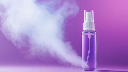 professional photography of a high-end facial mist spray, soft spotlight with a mist effect, pastel lavender background, empty space for text on the right, serene and refreshing mood --chaos 20 --ar 16:9 --v 6.1 Job ID: 02aac3f4-eb0f-4a1e-a6c9-bdb65d334e6f