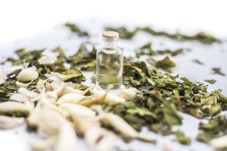 Essential oils of herbs and plants. selective focus. Nature.