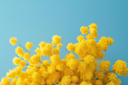 Yellow mimosa branch against bright blue sky as a natural spring background
