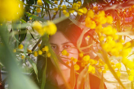 beautiful mimosa branches outdoor, yellow flowers for womens day or easter