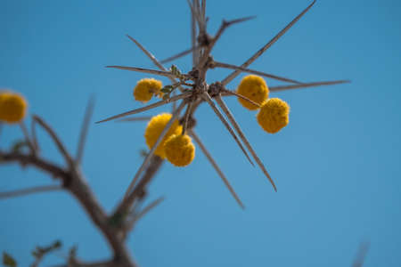 Water Acacia or Water Thorn Blooming with Yellow Blossoms in Etosha National Park, Namibia, Africa, also called Acacia Nebrownii in Latin