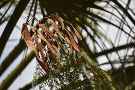 Leucaena leucocephala tree branches, with hanging seed pods.