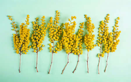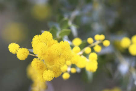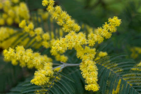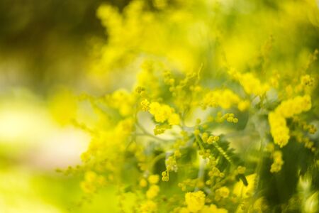Close up of yellow mimosa flowers in full bloom, natural floral background