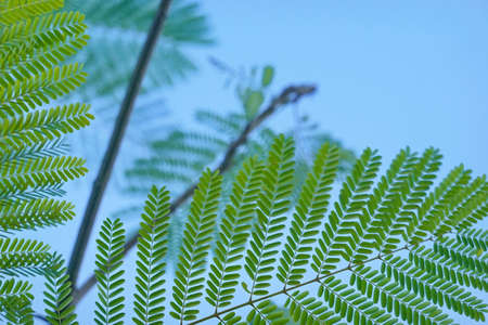 Close-up of Leaves of The Flame tree (Delonix regia (Hook.) Raf.). Green leaf background concept. Natural environment wallpaper.
