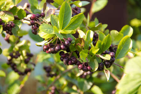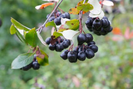 beautiful fruit of a bush chokeberry in a country garden