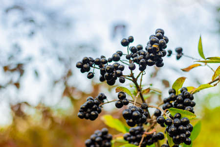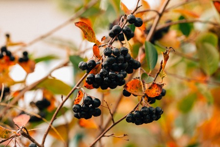 black ripe berries of chokeberry in the autumn