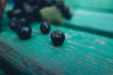 Chokeberry (Aronia melanocarpic) on a wooden table