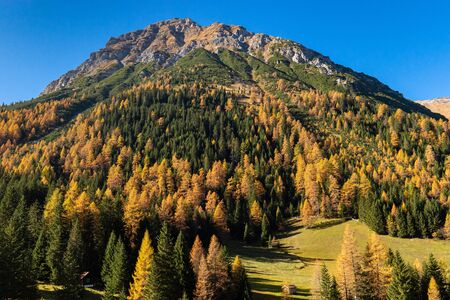 Autumn colours scenic in the Austrian Alps. Fall mountain landscape.