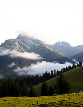 Mountain landscape with fog and clouds in the Alps, Austria.