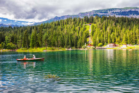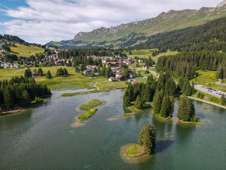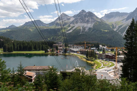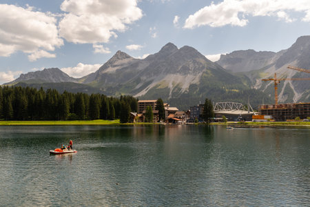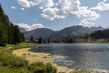 Arosa, Switzerland, August 15, 2021 Lake view in an idyllic alpine scenery