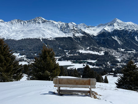 A fairytale winter atmosphere and a magnificent panorama on the mountine tourist resorts of Valbella and Lenzerheide in the Swiss Alps - Canton of Grisons, Switzerland (Schweiz)