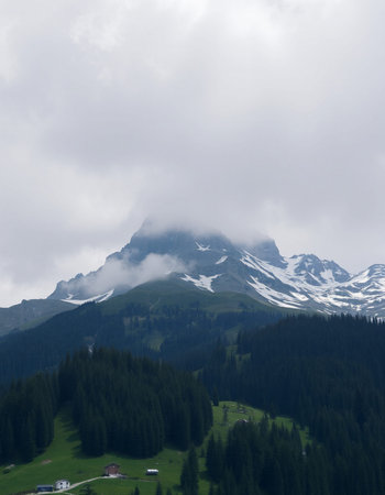 Mountains in the Swiss Alps, Switzerland. Cloudy day.
