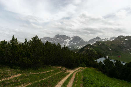 Sareis, Liechtenstein, June 20, 2021 Terrific view over the alps with clouds in the sky