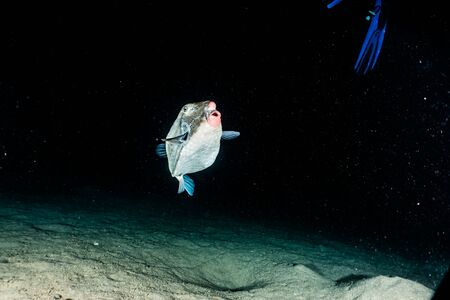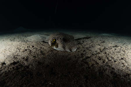 Fished abacus, a bloated spiky harisenbon, night fishing at a fishing port, Miyakojima, Okinawa, Japan.