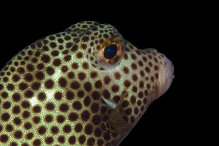 White-spotted puffer fish close up . Arothron hispidus