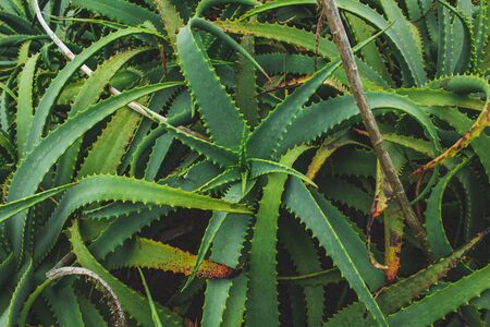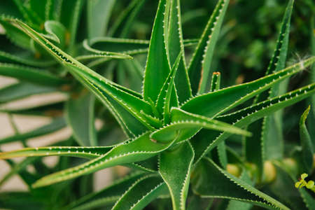 Juicy green prickly aloe leaves. Aloe vera is the best natural herbal remedy for wound healing and cosmetic procedures. alternative medicine.