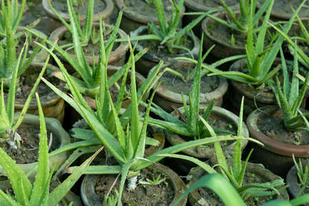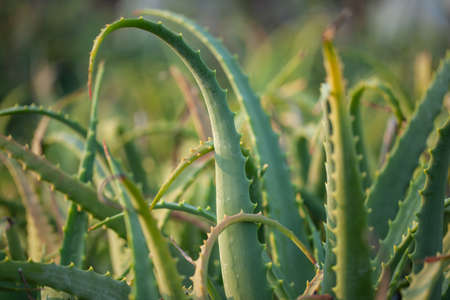 Aloe vera, fresh leaf in a farm garden natural background sun light, for cosmetics ingredient. selective focus
