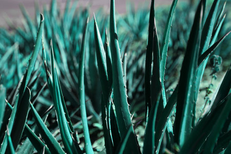 Large cactus agave close-up with selective focus. Floral background, poster design, abstract