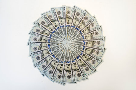 Mandala kaleidoscope from money. Abstract money background raster pattern repeat mandala circle. On white background.