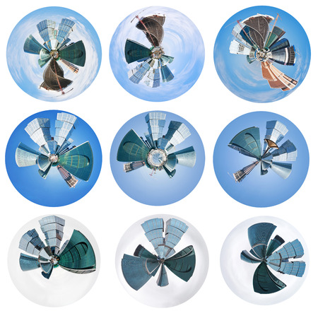 set of spherical views of Moscow city towers