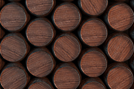 Close-up of a stack of whisky Barrels. Generative AI