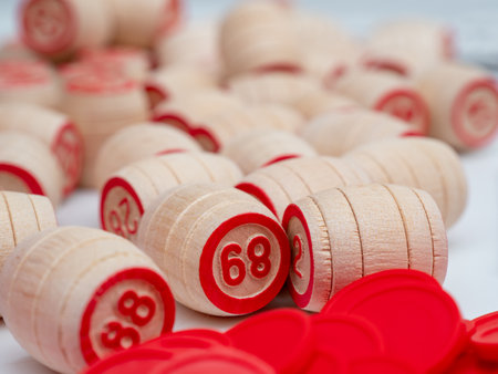 traditional legacy of the ancient Board game Lotto on wooden background