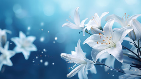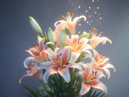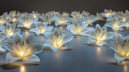 Magical lilies aglow with sparkling twilight, perfect for tranquil and mystical themes