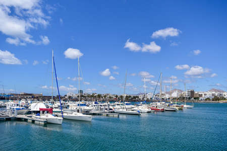 View of the harbour in Puerto del Carmen in Lanzarote Canary Islands Spain