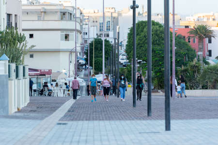 Puerto del Rosario, Fuerteventura, Spain: 2020 October 4: People walk in the city of Puerto del Rosario in Fuerteventura in Spain in Autumn 2020