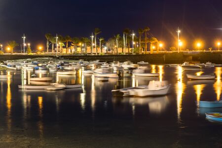 Port of Arrecife city at night. Lanzarote, Canary Island, Spain